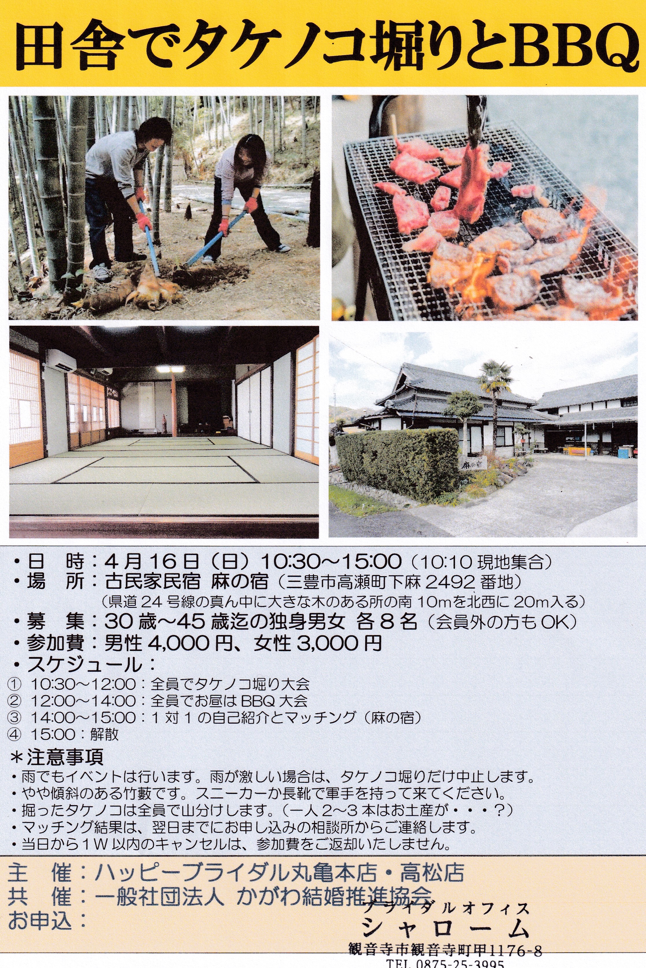 ・雨でもイベントは行います。雨が激しい場合は、タケノコ堀りだけ中止します。